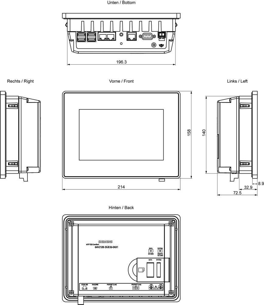 SIEMENS - SIE6AV21283GB360AX1 SIMATIC HMI MTP700 UNIFIED COMFORT NEUTR - 6AV21283GB360AX1