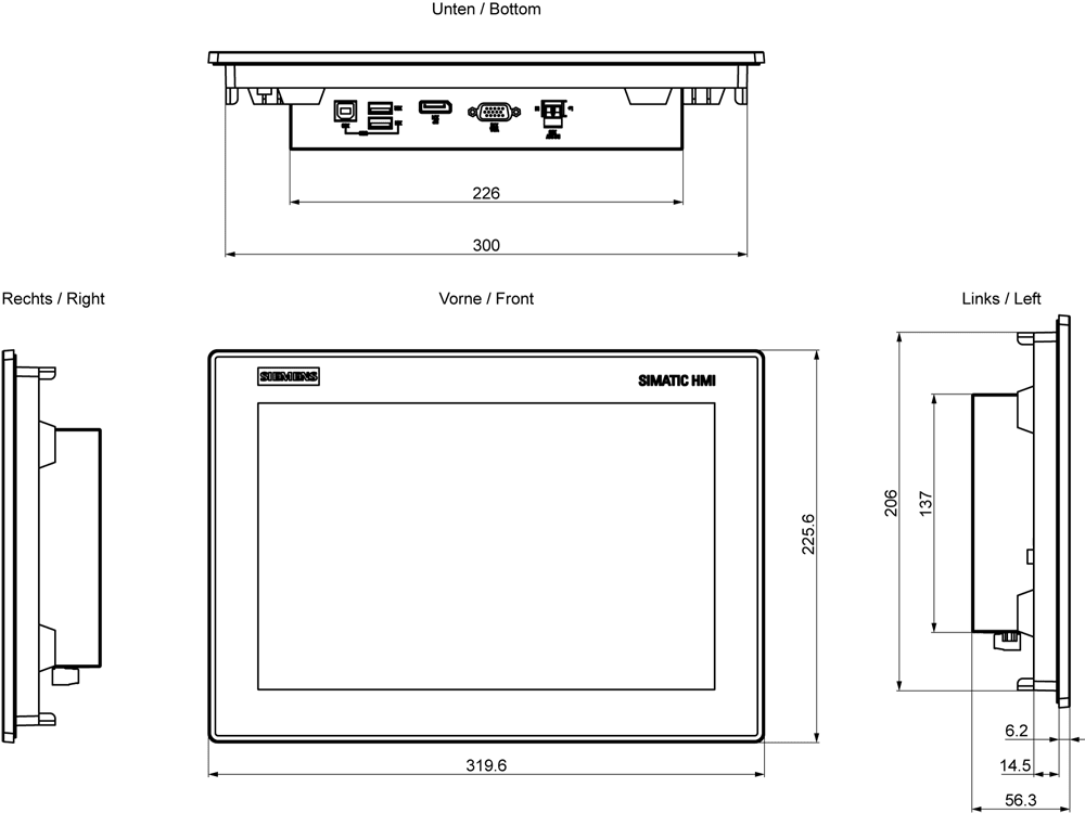 SIMATIC IFP1200 Basic display Flat Panel 12 (16:10), touch, 1280 x 800 pixel, standard fino a 5 m, per DC 24 V, DisplayPort / interfaccia VGA I SIMATIC Industrial Flat Panel sono idonei per molti campi dimpiego nellindustria, sia come apparecchiatura desktop per la manutenzione sia come apparecchiatura da incasso per pulpiti di comando sia come soluzione di visualizzazione e comando basata su PC, per linstallazione distaccata dal PC industriale o dal server. I Thin Client e i monitor industriali SIMATIC offrono sempre la soluzione ottimale, come prodotto singolo o anche con più stazioni operatore.
