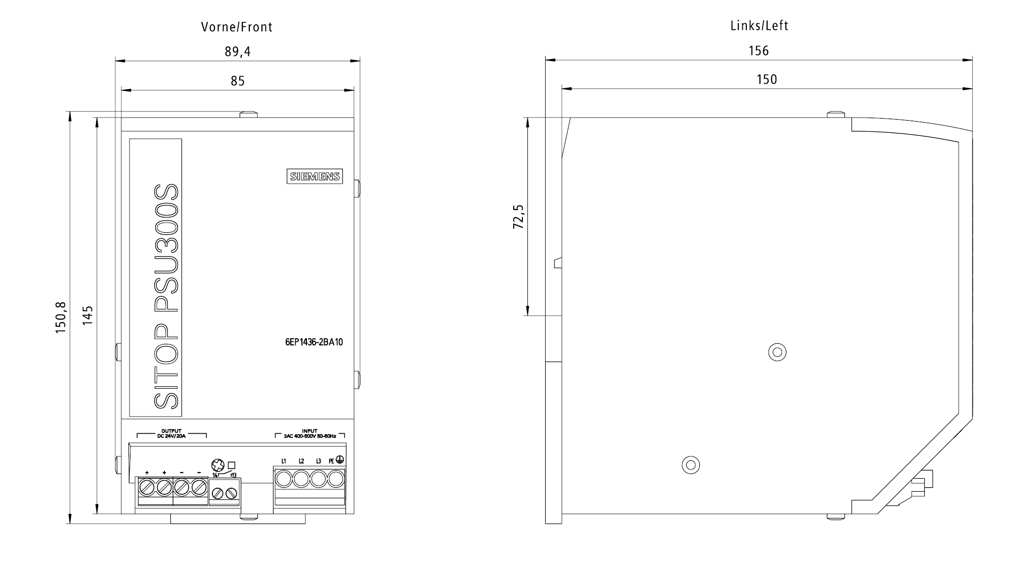 SIEMENS - SIE6EP14362BA10 SITOP PSU300S 24 V/20 A - 6EP14362BA10