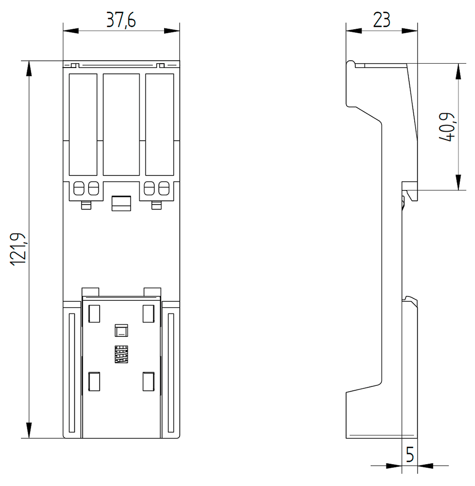 SIMATIC S7-300, adattatore di montaggio per il montaggio a scatto del PS307 su guida profilata normalizzata da 35x15/7,5 mm adatto per 6ES7307-1BA01-_, -1EA01-_, -1KA02-_ e superiore