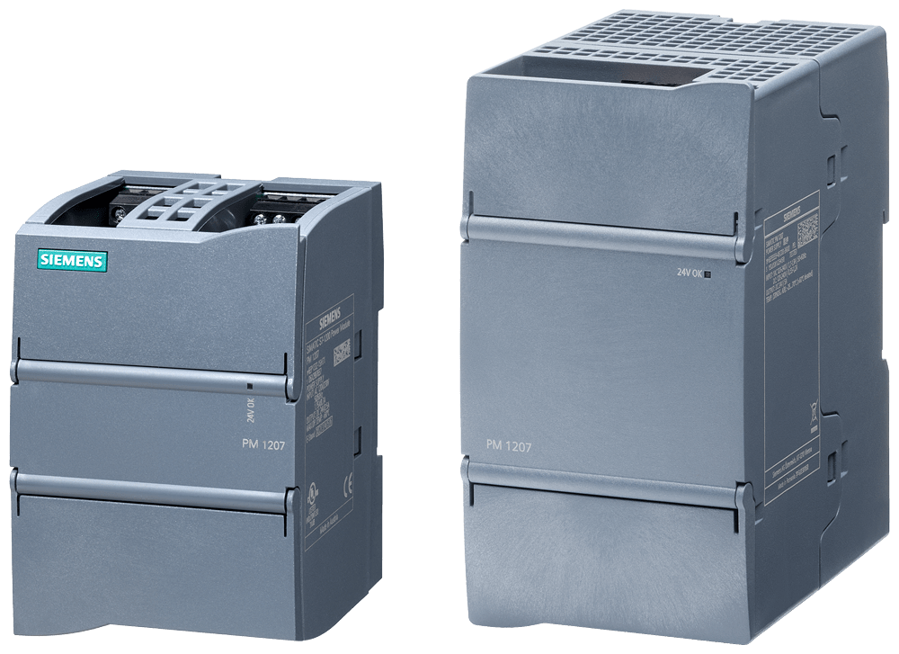 SIMATIC S7-1200 Power Module PM 1207 24V/5A alimentatore stabilizzato ingresso: AC/DC 120 - 240 V uscita: DC 24 V/5 A con interfaccia di diagnostica Lalimentatore di corrente di carico monofase SIMATIC PM1207 (PM = Power Module) nel design SIMATIC S7-1200 G2, è largo solo 70 mm e quindi occupa poco spazio in combinazione con il micro PLC. Lalimentatore da rete a 5 A alimenta CPU con ingresso a 24 V, unità di ingressi/uscite e i relativi carichi collegati. Lingresso wide-range garantisce il collegamento senza problemi a reti AC/DC monofase da 120 a 240 V in ambito industriale e residenziale. Il montaggio avviene su guida DIN o mediante viti nel caso di montaggio a parete. Numerose certificazioni quali UL e GL ne consentono un impiego universale. Indipendentemente dal settore o dallesigenza, Siemens offre alimentatori affidabili ed efficienti per ogni impianto.
