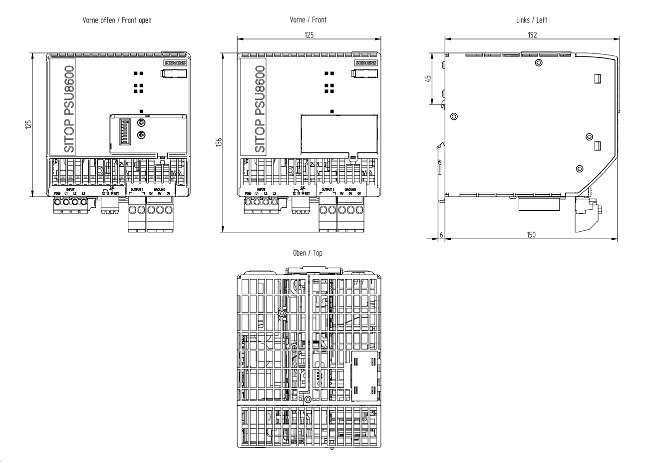 SITOP PSU8600 3AC 40A PN alimentatore stabilizzato ingresso: 3 AC 400...500 V uscita: DC 24 V/40 A con collegamento PN/IE Web server integrato server OPC UA integrato Gli apparecchi di base trifase del sistema di alimentazione SITOP PSU8600 sono ideali per limpiego in impianti o macchine di grandi dimensioni con sistemi di automazione collegati in rete (PROFINET) ed elevati requisiti di affidabilità, funzionalità e integrazione del sistema. In una larghezza costruttiva assai compatta, SITOP PSU8600 include uninterfaccia Industrial Ethernet/PROFINET con due collegamenti e unuscita parametrizzabile (tensione e valore di soglia di corrente) con sorveglianza selettiva. Senza onere di cablaggio e secondo le necessità, questi alimentatori da rete possono essere collegati con ulteriori moduli del sistema modulare per lampliamento del numero di uscite (CNX8600) o per lincremento del tempo di tamponamento per mancanza tensione di rete (BUF8600, UPS8600/BAT8600). Tramite PROFINET sono disponibili inoltre numerose informazioni di diagnostica e di manutenzione elaborabili direttamente nel SIMATIC S7 e visualizzabili in SIMATIC WinCC. È supportata ottimamente anche la gestione dellenergia grazie allacquisizione dei dati energetici di ogni uscita e linserzione e disinserzione individuale delle uscite tramite PROFIenergy. Lesclusivo sistema di alimentazione modulare PSU8600 con totale integrazione in TIA stabilisce nuovi standard in termini di affidabilità ed efficienza del sistema.