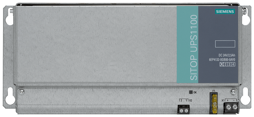 SITOP UPS1100 modulo batteria con batterie al piombo sigillate batteria al piombo puro per moduli SITOP DC-UPS DC 24 V 2,5 Ah I moduli batteria esenti da manutenzione SITOP UPS1100 con batterie al piombo puro, più insensibili alle temperature, sono un importante componente dei sistemi DC-USV. In combinazione con un alimentatore a 24 V e un modulo UPS1600 consentono di bufferizzare cadute di rete anche dellordine di ore. La gestione intelligente delle batterie dellUPS1600 ricarica lUPS1100 con la caratteristica di carica ottimale a temperatura controllata e sorveglia lo stato via Energy Storage Link (dati di funzionamento e informazioni di diagnostica) dei moduli batteria collegati. Per ottenere tempi di bufferizzazione più lunghi è possibile collegare fino a sei moduli batteria paralleli. Il fissaggio si esegue su guida profilata standard o con il montaggio direttamente a parete.