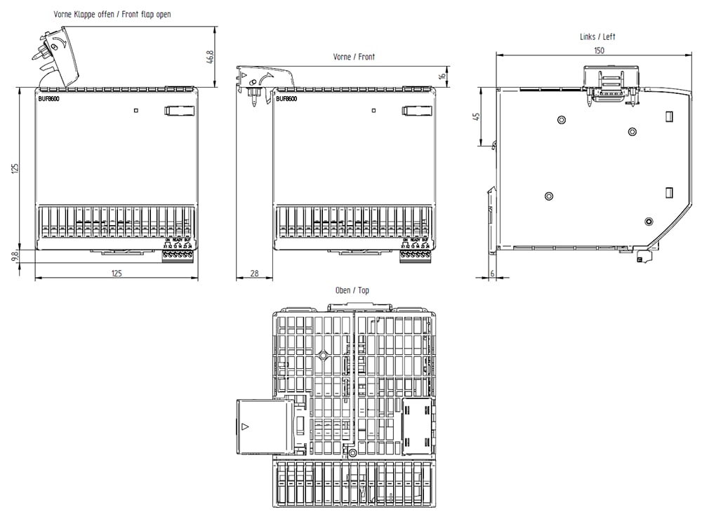 SITOP BUF8600 10s modulo buffer per PSU8600 capacità di tamponamento 10 s/40 A con condensatori a doppio strato esenti da manutenzione I moduli buffer SITOP BUF8600 con accumulatori di energia esenti da manutenzione fanno parte del sistema modulare SITOPPSU8600 e superano in modo affidabile brevi cadute di rete fino a 10 s a DC 24 V e 40 A a pieno carico. In caso di caduta della tensione di rete assicurano automaticamente lalimentazione a corrente continua. Al dispositivo di base SITOP PSU8600 si possono collegare fino a due moduli buffer BUF8600 combinabili a scelta. Il collegamento è possibile senza cablaggio sulla parte superiore deimoduli mediante System Clip Link, un connettore per dati di sistema e alimentazione di energia. Il sistema di alimentazione modulare PSU8600 con integrazione TIA completa, unico nel suo genere, fissa nuovi standard in termini di affidabilità dellimpianto ed efficienza.