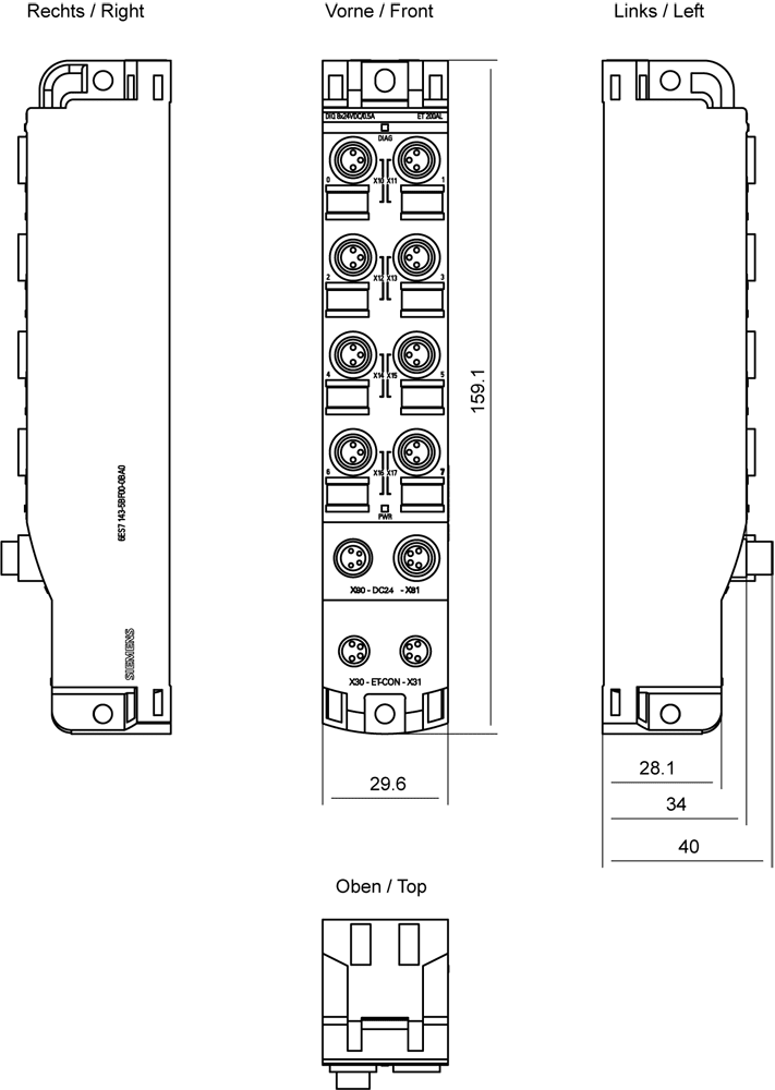 Feldbusanschluss über seperaten Buskoppler möglich: