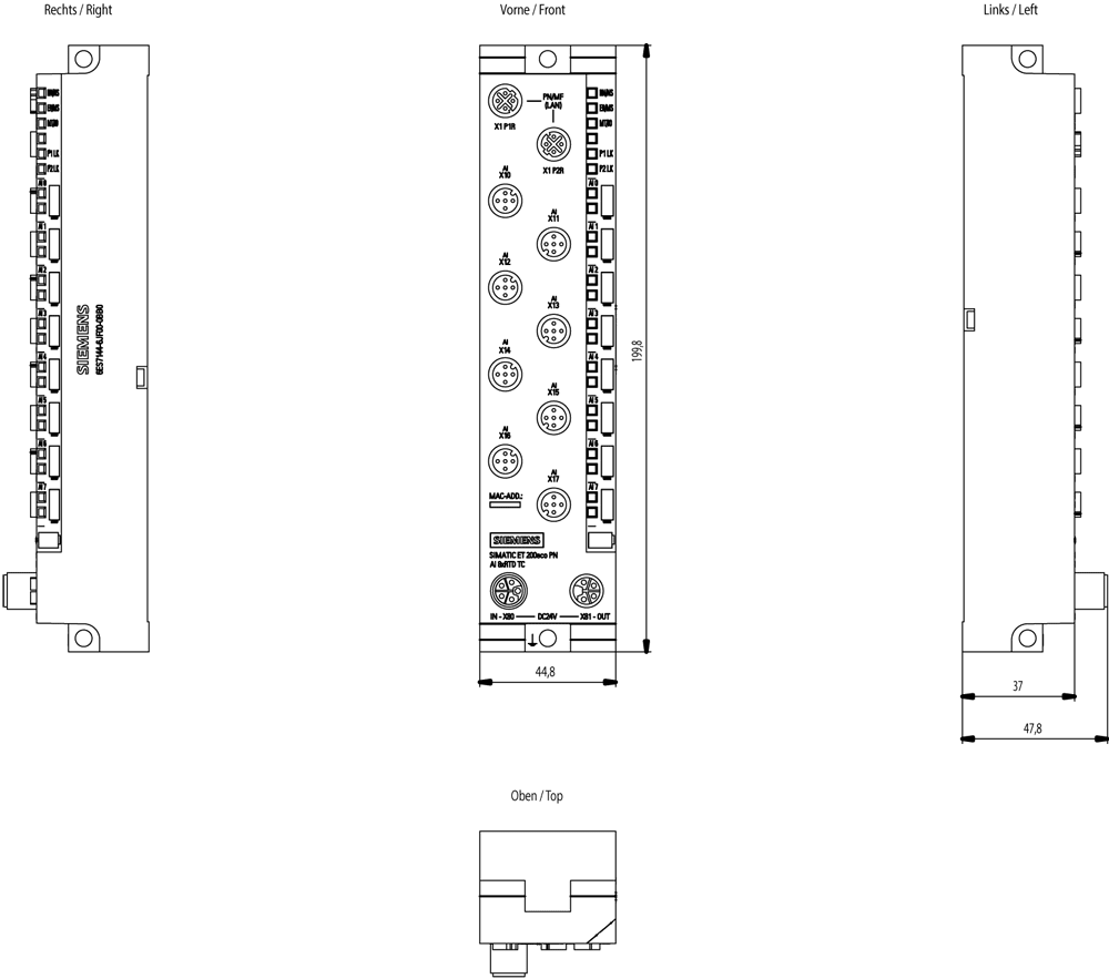 Feldbusanschluss über seperaten Buskoppler möglich: