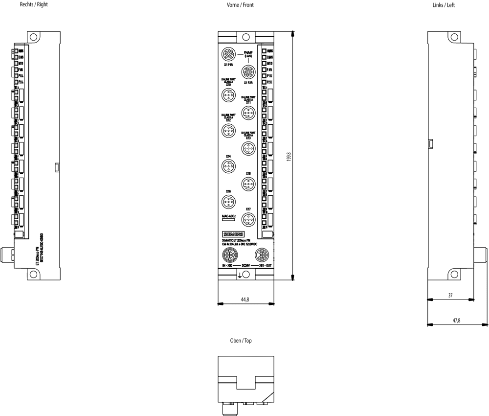 Feldbusanschluss über seperaten Buskoppler möglich: