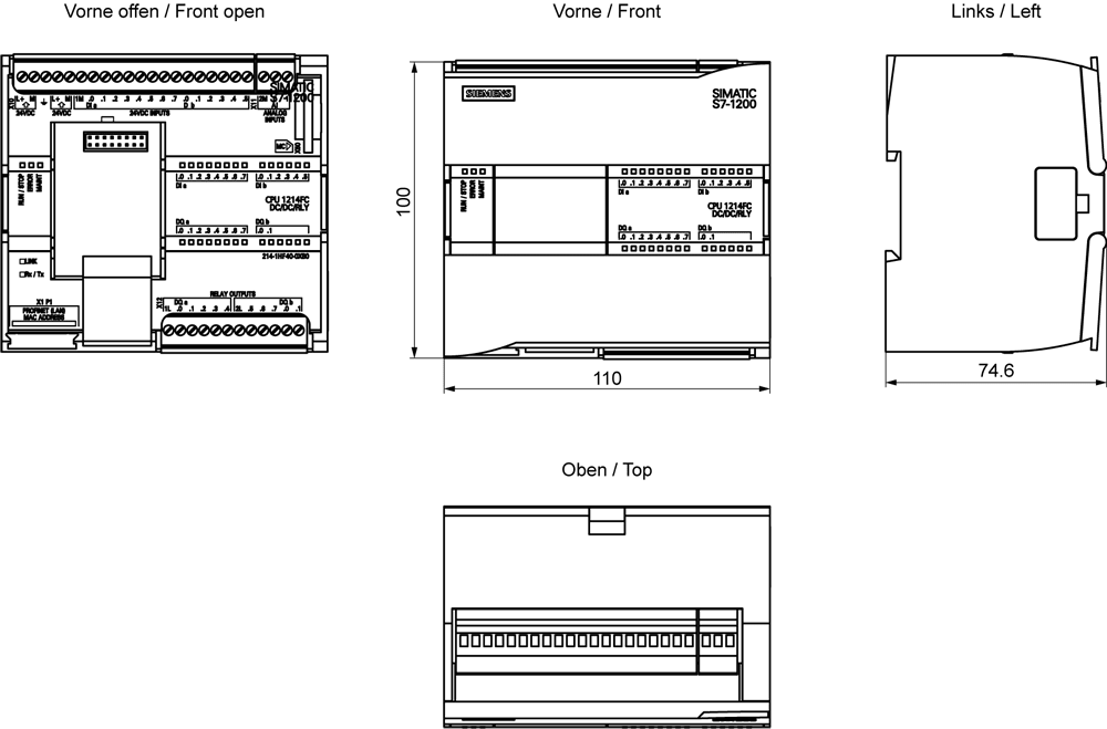 SIEMENS - SIE6ES72141HF400XB0 CPU 1214 FC, DC/DC/RELAY, 14DI/10DO/2AI - 6ES72141HF400XB0