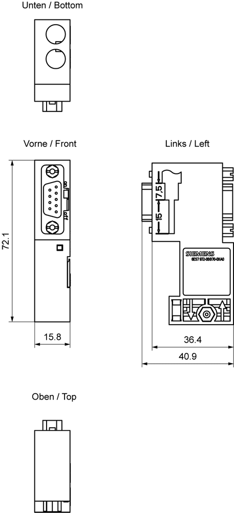 SIEMENS - SIE6ES79720BB700XA0 PB CONNECTOR, 90 DEGREE, WITH PG SOCKET - 6ES79720BB700XA0