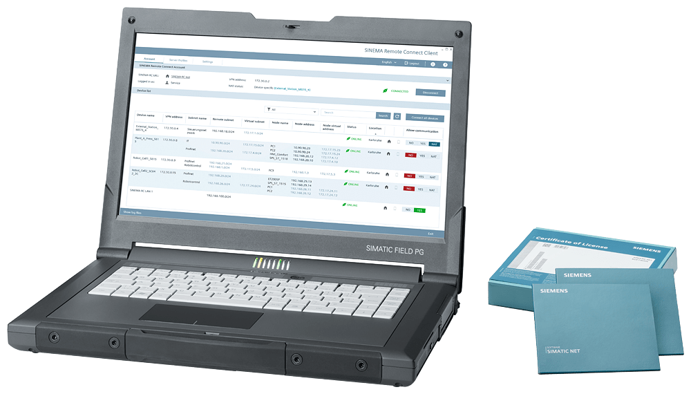 SINEMA Remote Connect Virtual Appliance; Basic Software Package per 4 collegamenti VPN gestione di utenti, apparecchi, gruppi ; gestione dei certificati; interfaccia di autoconfigurazione; SINEMA RC Client: per 1 installazione software, documentazione suDVD; License Key per server, in 3 lingue (de, en, zh); Windows 10 Pro, Windows Server2008, 2012 R2 2016 e 2019 (64 bit). SIMATIC NETSINEMA RC VIRTUAL-APPL.