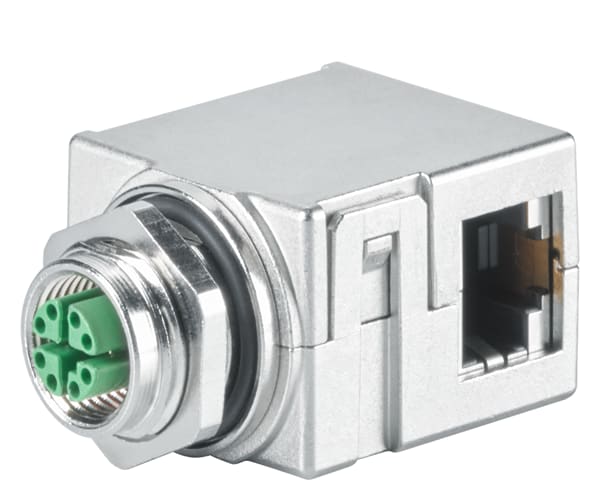 IE M12 Panel Feedthrough 4x 2 condotto passacavi per quadro elettrico per il passaggio dalla tecnica di collegamento M12 (X-coded, IP65/67) alla tecnica di collegamento RJ45 IP20 1 confezione=5 pezzi. SIMATIC NET IE M12 Panel Feedthrough 4x2, velocità ditrasmissione IE 10 Mbit/s, 100 Mbit/s, 1000 Mbit/s, 10000 Mbit/s; presa M12 (X-coded, IP65/67) e RJ45 (IP20), in metallo, Cat6A come condotto passacavi per quadro elettrico per il passaggio dalla tecnica di collegamento M12 (X-coded, IP65/67) a quella RJ45 (IP20), condotto passacavi per quadro elettrico IE M12 Panel 4x2