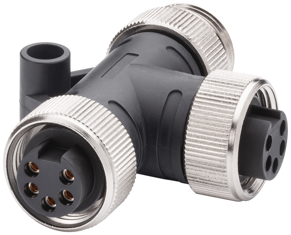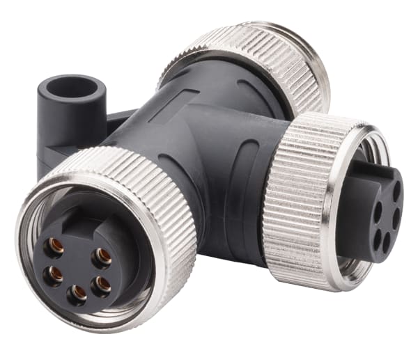 Power T-Tap PRO 7/8 elemento a T per adduzione dellenergia allET 200 con due inserti femmina da 7/8 e un inserto maschio da 7/8, 1 confezione=5 pezzi. SIMATIC NET 7/8 Power T-Tap PRO 7/8 Power T-Tap PRO, elemento a T per energia per ET 200, 2x inserti femmina, 1x inserto maschio