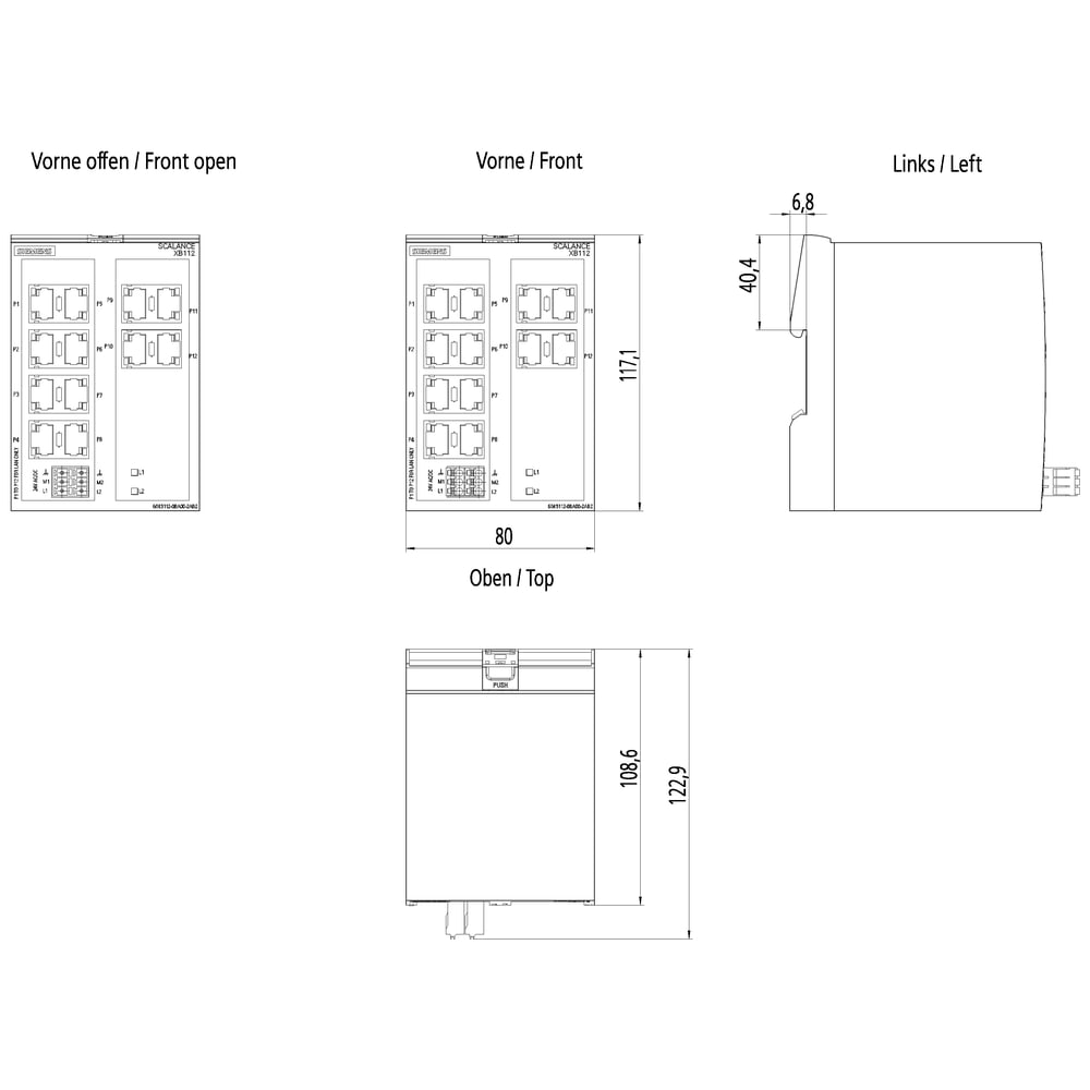 SCALANCE XB112 unmanaged IE Switch, 12x porte 10/100 Mbit/s RJ45, per la configurazione di piccole strutture a stella e strutture lineari; diagnostica LED, IP20, alimentazione di tensione ridondante, AC/DC 24V manuale disponibile come download . SCALANCEXB112, unmanaged switch, 12x porte RJ45 da 10/100 Mbit/s. Economico, semplice e versatile: uno SCALANCE XB112 è lo switch ideale per garantire una infrastruttura di rete affidabile e robusta. Con SCALANCE XB112 si trova sempre il giusto unmanaged switch per i collegamenti di reti elettriche e ottiche. Grazie allhardware potente e alle funzioni avanzate, assicura lintegrazione diretta e la scalabilità per qualsiasi ambiente di rete. Con la nuova serie di unmanaged switch SCALANCE XCM-100 è possibile ancherealizzare applicazioni Power over Ethernet. I nostri unmanaged switch e Media-Converter sono perfetti per limpiego in vicinanza delle macchine nelle reti industriali e resistono anche alle condizioni ambientali gravose.