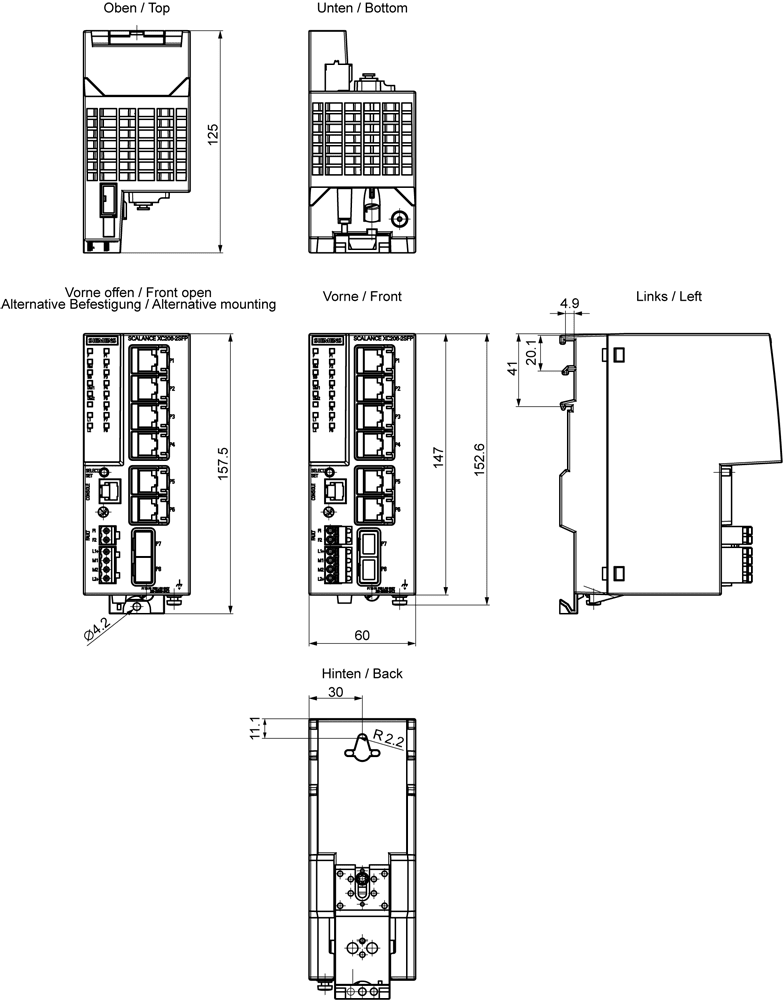 SCALANCE XC206-2SFP manageable IE Switch di Layer 2; certificato IEC 62443-4-2; 6x porte RJ45 da 10/100 Mbit/s; 2x SFP da 100/1000 Mbit/s; 1x porta console; LED di diagnostica; alimentazione di tensione ridondante; campo di temp.-40 °C...+70 °C; montaggio: guida DIN/profilata S7/a parete funzioni di ridondanza Office Features (RSTP, VLAN,...); PROFINET IO Device; conforme a Ethernet/IP; slot C-PLUG; SCALANCE XC206-2SFP managed, switch compatto di Layer 2, 6x RJ45 da 10/100 Mbit/s, 2x SFP da 100/1000 Mbit/s per Industrial Ethernet (PROFINET ed EtherNet/IP). Indicato per numerose applicazioni: Lo SCALANCE XC206-2SFP offre unampia varietà di switch Ethernet altamente performanti in diverse varianti: dagli switch Gigabit agli switch robusti per i requisiti dellautomazione discreta e di processo. I potenti switch Gigabit SCALANCE XC206-2SFP sono stati sviluppati per rispondere ai difficili requisiti delle reti negli ambienti industriali. Grazie allhardware potente e alle funzioni avanzate, assicurano uninfrastruttura di rete affidabile e scalabile per qualsiasi applicazione. Realizzazione semplice e affidabile di molte applicazioni industriali.
