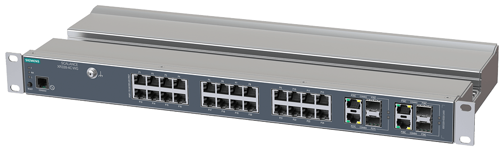 SCALANCE XR328-4C WG; managed IE Switch; rack da 19; 24 x 10/ porte elettriche da 100/1000 Mbit/s ; 4 x porte Combo da 1000Mbit/s elettriche o ottiche; diagnostica LED; tasto Reset; porta di console; PROFINET Device; funzione di Network Management; manager di ridondanza; alimentazione di tensione AC 240 V (85 - 264V). certificato IEC 62443-4-2 SCALANCE XR328-4C WG managed, rack switch workgroup di Layer 2, 24x RJ45 da 100/1000 Mbit/s, 4x porte combo da 100/1000 Mbit/s, AC 230 V, costo ottimizzato per grandi sale controllo. Switch per quadro elettrico SCALANCE XR328-4C flessibile e compatto: la prossima generazione di reti industriali combina OT e IT per una produzione più flessibile e sicura. I nostri switch Ethernet SCALANCE XR-300 come apparecchi compatti o come switch a 19 per il quadro elettrico assicurano un elevato livello di funzionalitàe flessibilità con Industrial Edge e, in futuro, anche con Time-Sensitive Networking (TSN). Scoprite i molteplici vantaggi della nostra serie di apparecchiature SCALANCE XR-300: dagli switch per il quadro elettrico da utilizzare negli ambienti industriali agli switch Ethernet in design compatto, fino agli switch per le condizioni industriali più gravose: con SCALANCE XR328-4C si trova sempre il giusto switch per numerose applicazioni.
