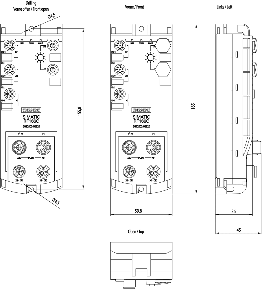 RFID Communication Module RF166C per PROFIBUS DP V1, Ethernet per WBM e OPC UA, 2 reader collegabili. SIMATIC RFSistemi di identificazionemodulo di comunicazione RF166C