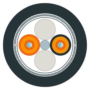 FO Ground Cable 50/125, confezionato 2x2 connettori BFOC, utensile di inserimento, lunghezza 300m. SIMATIC NETCaviFO Ground CableFO Ground Cable 50/125/1400 (OM 2), multimode, 2x 2 ST, protezione antiroditori, 300 m