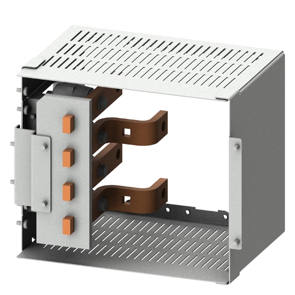 collegamento del cavo posteriore 3VL4 fino a 400A a 4 poli, A: 250mm Il quadro di distribuzione dellenergia SIVACON S4 è un sistema economico di involucri e componenti SENTRON. I quadri di distribuzione dellenergia SIVACON di Siemens si contraddistinguono soprattutto per le seguenti caratteristiche: 1. Il software di configurazione SIMARIS configuration aumenta la sicurezza della pianificazione e fa risparmiare tempo nella preparazione dellofferta come pure della documentazione dellimpianto. 2. Durante lesercizio un sistema di ventilazione efficiente, appositamente studiato per i componenti, impedisce surriscaldamenti e concentrazioni di calore, riduce il derating e assicura così una disponibilità costante dellimpianto. 3. La forma della segregazione interna fino a 4b può essere realizzata in modo ottimale mediante componenti standard. 4. La struttura del quadro di distribuzione dellenergia SIVACON S4 semplifica il collegamento e linstallazione degli apparecchi. 5. Grazie a portapparecchi regolabili in profondità si hanno moltissime possibilità di installazione con una ridotta varietà di componenti, vedi ad. es. la scelta del meccanismo di comando e il tipo di montaggio degli apparecchi di manovra. 6. Grazie al concetto di produzione flessibile dei quadri di distribuzione SIVACON S4 certificato secondo ISO 9001 si possono realizzare soluzioni premontate in diverse varianti costruttive (secondo necessità con o senza elementi strutturali in rame) fornibili in tempo assai breve.