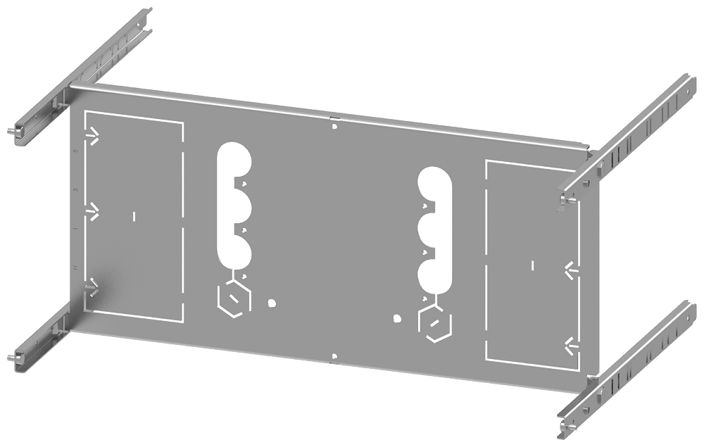 piastra di montaggio 3VA13 (400A), 3VA14 (630A), 3VA23 (400A), 3VA24 (630A), a 4 poli, installazione fissa, RCD: senza, A: 250 mm, La: 600mm Il quadro di distribuzione dellenergia SIVACON S4 è un sistema economico di involucri e componenti SENTRON. I quadri di distribuzione dellenergia SIVACON di Siemens si contraddistinguono soprattutto per le seguenti caratteristiche: 1. Il software di configurazione SIMARIS configuration aumenta la sicurezza della pianificazione e fa risparmiare tempo sia nella preparazione dellofferta sia nella documentazione dellimpianto. 2. Durante lesercizio un sistema di ventilazione efficiente, appositamente studiato per i componenti, impedisce surriscaldamenti e concentrazioni di calore, riduce il derating e assicura così una disponibilità costante dellimpianto. 3. La forma della segregazione interna fino a 4b può essere realizzata in modo ottimale mediante componenti standard. 4. La struttura del quadro di distribuzione dellenergia SIVACON S4 semplifica il collegamento e linstallazione degli apparecchi. 5. Grazie a portapparecchi regolabili in profondità si hanno moltissime possibilità di installazione con unaridotta varietà di componenti, vedi ad. es. la scelta del meccanismo di comando e il tipo di montaggio degli apparecchidi manovra. 6. Grazie al concetto di produzione flessibile dei quadri di distribuzione SIVACON S4 certificato secondo ISO 9001 si possono realizzare soluzioni premontate in diverse varianti costruttive (secondo necessità con o senza elementi strutturali in rame) fornibili in tempo di consegna assai breve.