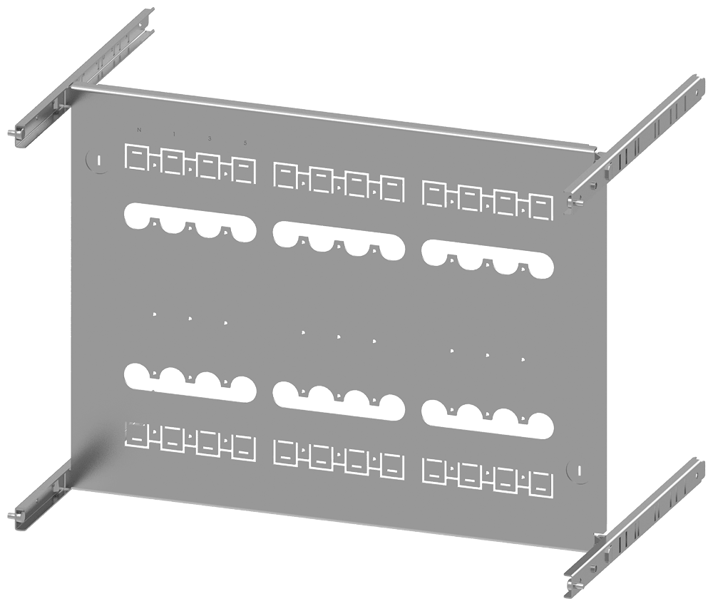 piastra di montaggio 3VA20 (100A), 3VA21 (160A), 3VA22 (250A), a 3 o 4 poli, RCD: con; installazione fissa, A: 450mm, La: 600mm Il quadro di distribuzione dellenergia SIVACON S4 è un sistema economico di involucri e componenti SENTRON. I quadri di distribuzione dellenergia SIVACON di Siemens si contraddistinguono soprattutto per le seguenti caratteristiche: 1. Il software di configurazione SIMARIS configuration aumenta la sicurezza della pianificazione e fa risparmiare tempo sia nella preparazione dellofferta sia nella documentazione dellimpianto. 2. Durante lesercizio un sistema di ventilazione efficiente, appositamente studiato per i componenti, impedisce surriscaldamenti e concentrazioni di calore, riduce il derating e assicura così una disponibilità costante dellimpianto. 3. La forma della segregazione interna fino a 4b può essere realizzata in modo ottimale mediante componenti standard. 4. La struttura del quadro di distribuzione dellenergia SIVACON S4 semplifica il collegamento e linstallazione degli apparecchi. 5. Grazie a portapparecchi regolabili in profondità si hanno moltissime possibilità di installazione con unaridotta varietà di componenti, vedi ad. es. la scelta del meccanismo di comando e il tipo di montaggio degli apparecchi di manovra. 6. Grazie al concetto di produzione flessibile dei quadri di distribuzione SIVACON S4 certificato secondo ISO 9001 si possono realizzare soluzioni premontate in diverse varianti costruttive (secondo necessità con o senza elementi strutturali in rame) fornibili in tempo di consegna assai breve.