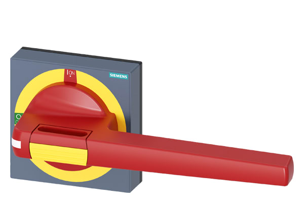 manopola con mostrina frontale emergenza dimensioni 100 x 100, per albero 12x 12, 0-I, operatore grandezza 200mm accessori per 3KD grand. costr. 5, 3KF grand. costr. 5 Comandi manuali per un comodo utilizzo dellinterruttore automatico scatolato 3VA. Disponibilità come comando rotativo frontale, per porta e parete laterale con diverse possibilità di chiusura a chiave e con interblocco Le manopole sono disponibili nelle varianti standard e ARRESTO DI EMERGENZA, ciascuna con o senza kit di illuminazione. Interruttori automatici scatolati SENTRON 3VA - Un sistema. Per tutte le applicazioni.