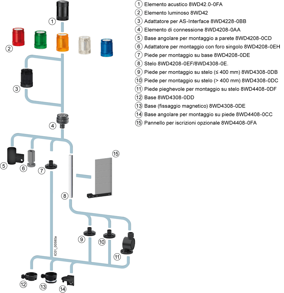 stelo singolo, lunghezza 100 mm, accessori per colonnine di segnalazione, con diametro 50 mm e 70 mm Colonnine di segnalazione SIRIUS 8WD - Modulari e con capacità di comunicazione in un design moderno.