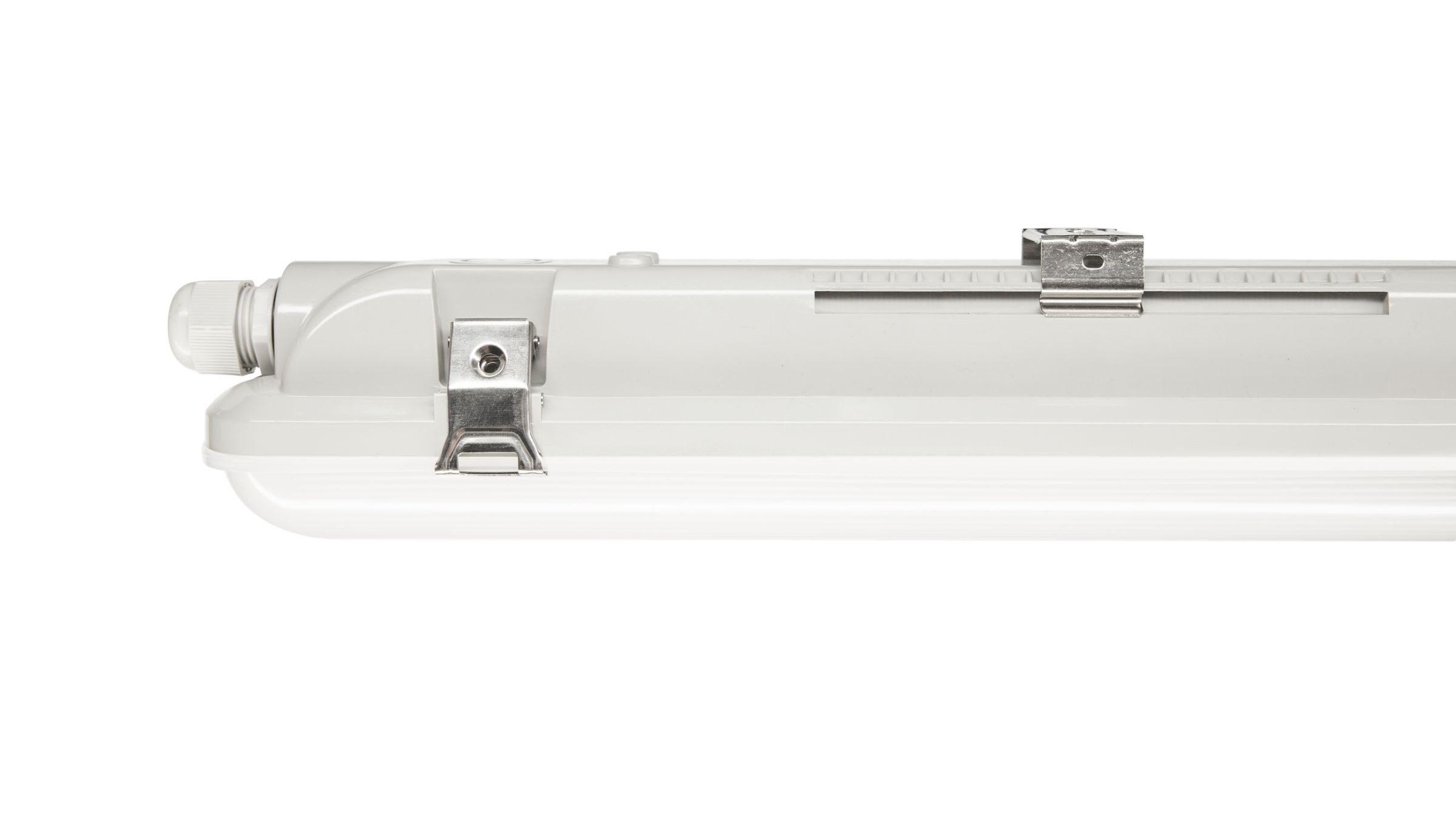 Waterproof TLED, L1200 mm, Policarbonato, Grigio, Unità di alimentazione (On/Off), 3600 lm, 30 W, 120 lm/W, 4000 K, (0.38,0.38) SDCM≤5, Riflettore ovale, Opale, Policarbonato, IP65 | Protetto contro la penetrazione di polvere, a prova di getto, IK08 | 5 J protezione dagli atti vandalici, Classe di isolamento I, Connettore a pressione 3 poli
