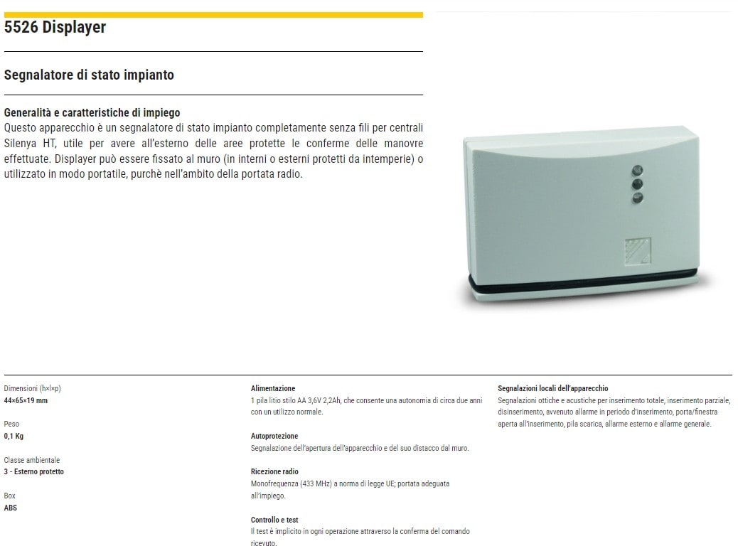 Segnalatore di stato impianto completamente senza fili per centrali Silenya HT