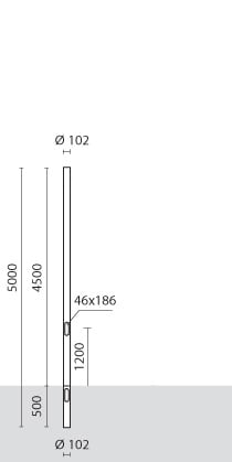 PALO CILINDRICO Ø 102 mm DA INTERRARE per AVENUE CICLABILE 600 mm. Altezza totale del palo 5000 mm. Da interrare per una profondità di 500 mm. Colore: Grigio alluminio (cod. 14).