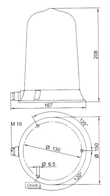Luce lampeggiante con base conforme alla ISO DIN B1 in policarbonato. Grado di protezione IP 65. Viene fornita senza lampada. Possibilità di installazione di una lampada LED.