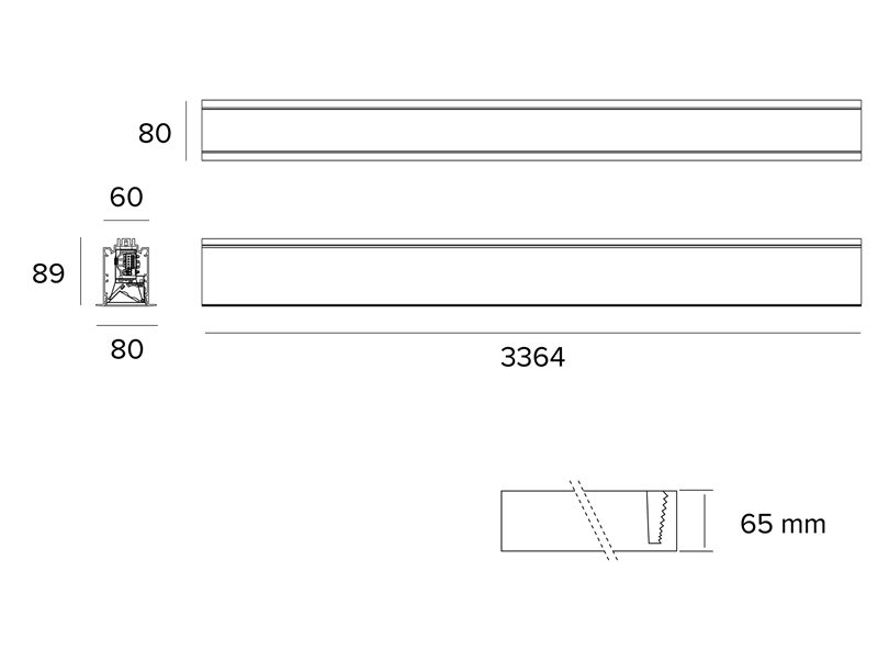 Apparecchio lineare LED stand-alone da incasso con flangia. 72W. 3000K. 10440 lm. L=3364 mm.