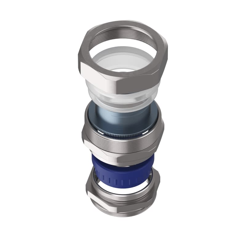 Oltre all’esigenza di un solido ancoraggio del raccordo sulla guaina, esiste anche la necessità di rendere stagna ed inamovibile (in caso di strappo o trazione) l’accoppiamento raccordo-cavo elettrico proveniente da canaline, cassette, motori, quadri elettrici, ecc.\rIl raccordo risolve brillantemente ambedue le necessità. L’ancoraggio del raccordo sulla guaina è garantito con la medesima efficacia che contraddistingue l’ancoraggio di tutti i raccordi CM, inoltre il particolare gommino pressacavo assicura sia la tenuta (da infiltrazioni di polvere e liquidi) che la protezione meccanica da eventuali strappi o trazioni del cavo stesso IP67.