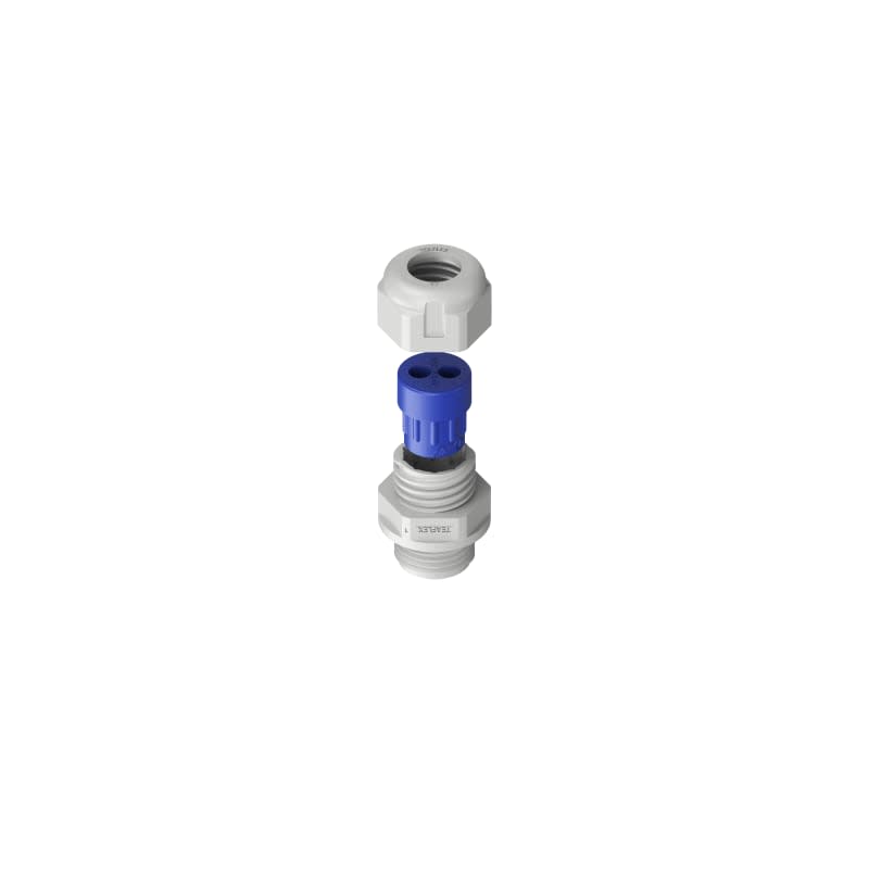 Pressacavo industriale multiforo in poliammide, questo pressacavo permette l’installazione di più cavi con ∅ esterno uguale consentendo un notevole risparmio di spazio. I fori dei gommini con la S finale non sono passanti IP68.