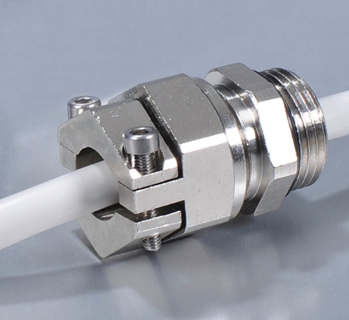 Le particolari ganasce di questi pressacavi oltre a garantire unaeccezionale tenuta a trazione del cavo;evitano la possibilità ditorsione del cavo stesso.Pressacavi in ottone nichelato con gommino di serraggio in TPEe anello “O” ring sulla filettatura. Viti di serraggio acciaioinox AISI 304.