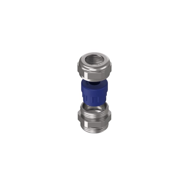 Pressacavo in acciaio inox AISI 316L con gommino di serraggio in TPE e anello O-ring sulla filettatura IP68.