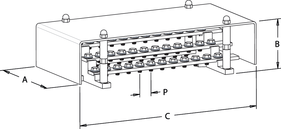 Morsettiera di distribuzione, marca TEKNOMEGA SRL, modello TKGPSP1036 - KIT RIPARTITORE 250A L310MM