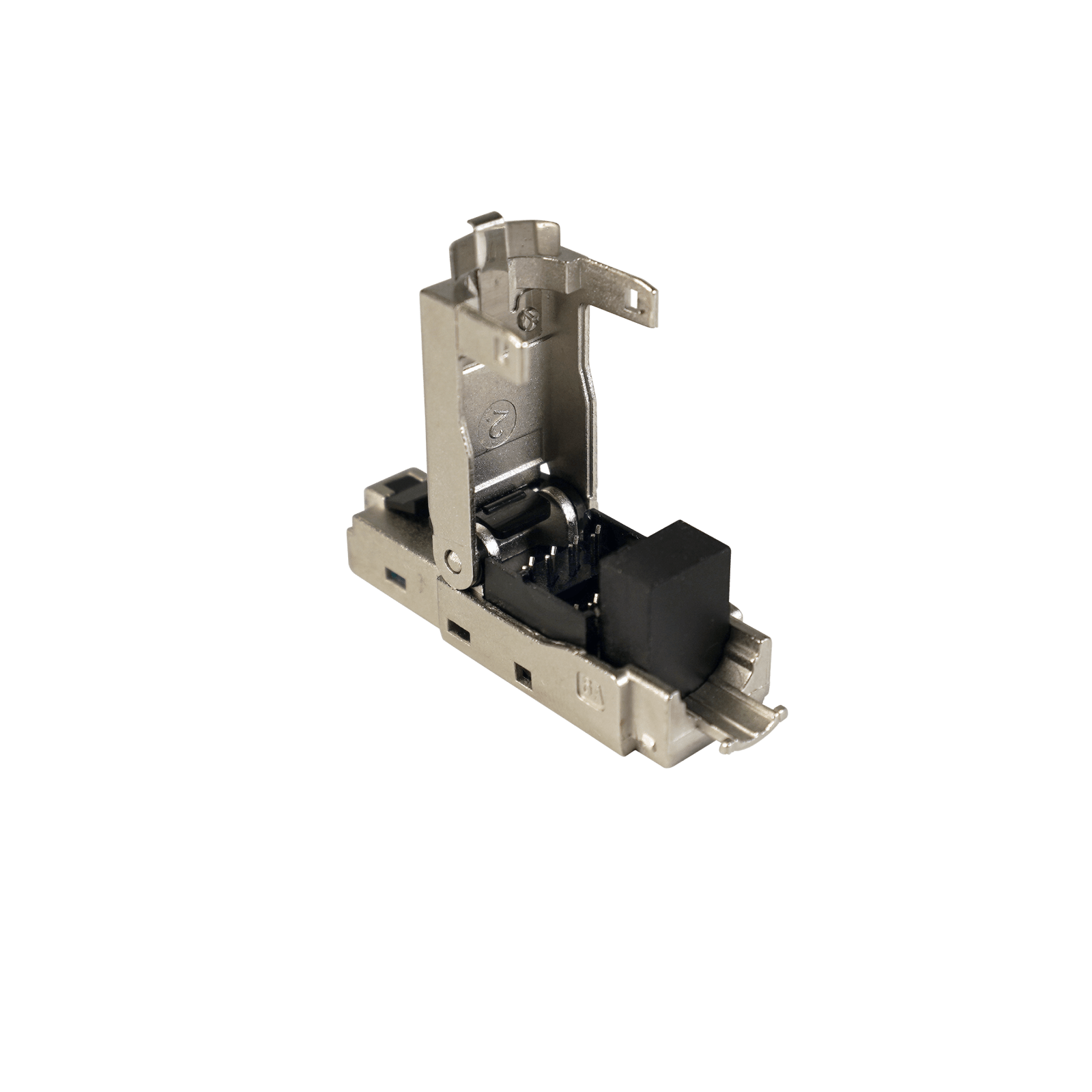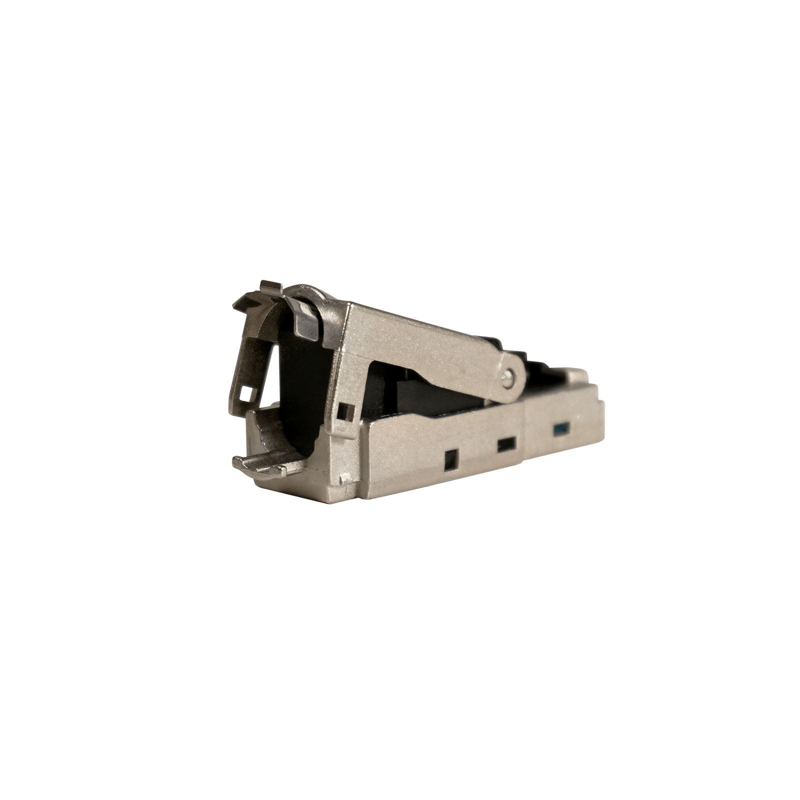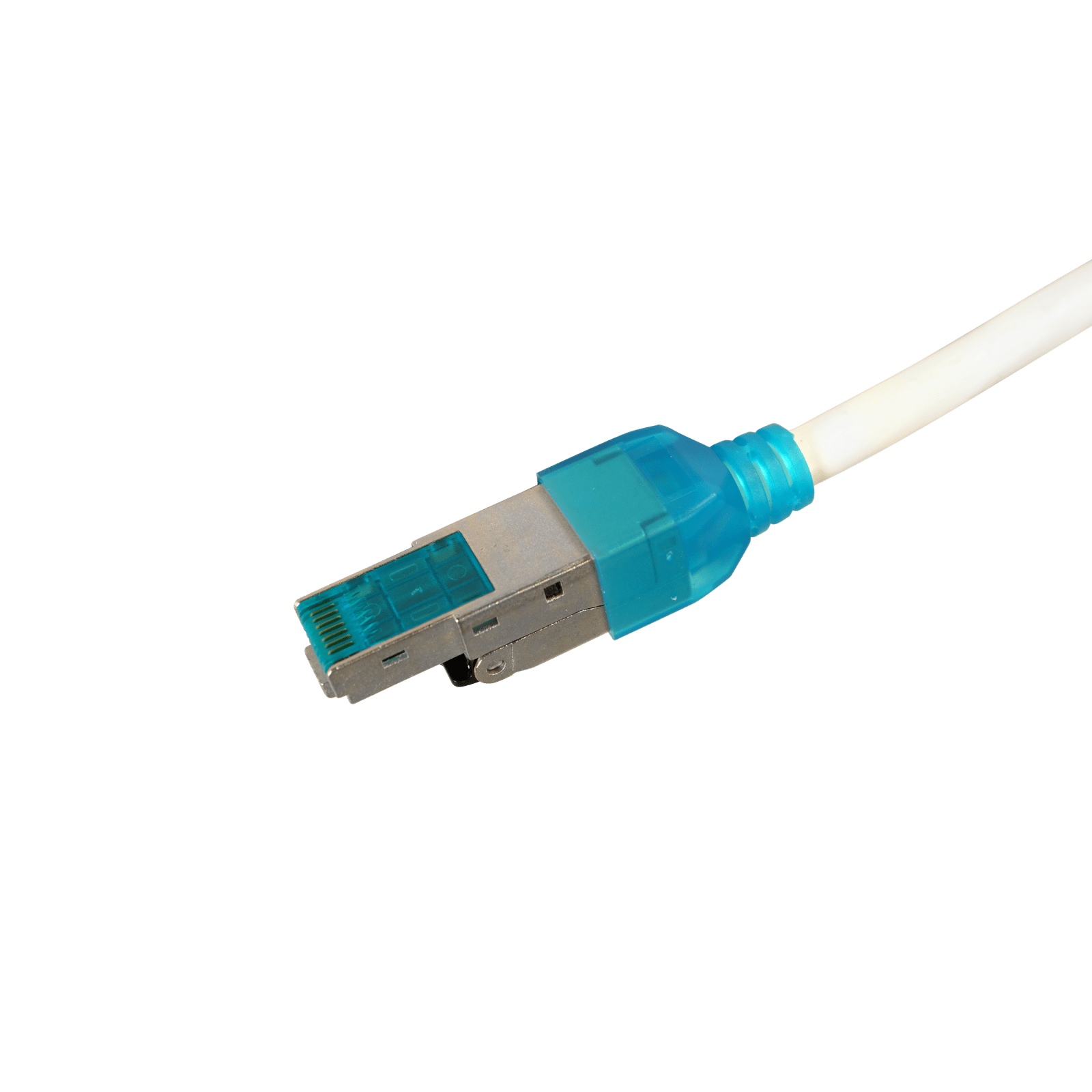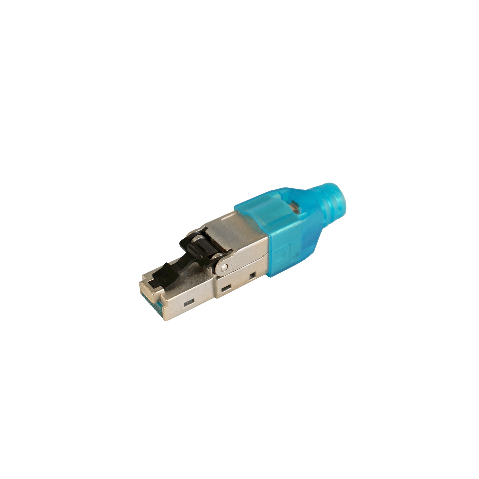 Connettore RJ45 maschio tipo Grip FTP Cat 6A per cavi dati. Connettore RJ45 FTP Cat 6A maschio riutilizzabile e di facile connettorizzazione e non richiede strumenti specifici. Il connettore stesso incorpora 2 pezzi che si agganciano insieme, fornendo il supporto necessario al cavo. Manicotto protettivo in plastica blu incluso. Ce connecteur, en raison de ses caractéristiques techniques, est recommandé pour les applications PoE++ (Type 3 et Type 4). Viene fornita in scatole da 25 pz. . Assemblaggio a Grip: il connettore è composto da due pezzi che si chiudono sul cavo, stringendolo in posizione e fissando l'ancoraggio delle coppie. Non sono necessari attrezzi: la crimpatura viene eseguita a pressione chiudendo il connettore. Compatibile con tecnologia PoE/PoE+/PoE++ (Power over Ethernet), permette di alimentare via cavo i dispositivi di rete. Riutilizzabile, può essere rimosso e rimontato senza deterioramento o perdere la sua funzionalità. Garantisce connessioni multiple senza perdita alcuna. Compatibile con Cat 6A o inferiori. Ingresso cavi a 180º. Tabella dei collegamenti (A o B) sul connettore. Contatti placcati in oro da 50 micron.