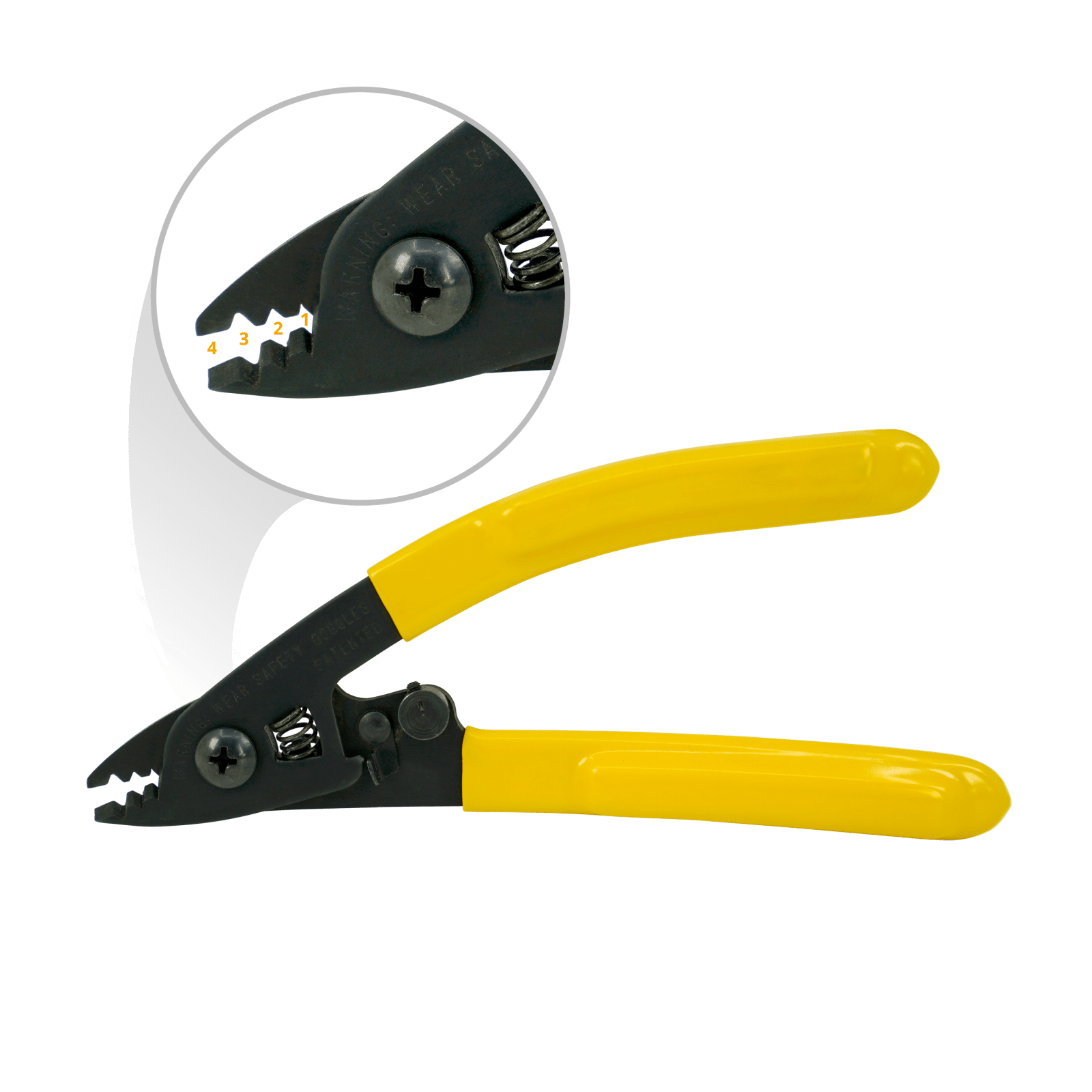 Pinza spelafibra di precisione per fibra ottica, con 4 aree di lavoro. Pinza spelafibra per una rimozione rapida, sicura e precisa sia della guaina che dei vari rivestimenti presenti sulla fibra (900 e 250µm).Progettata con 4 zone di lavoro: Zona di taglio (4): Facilita il taglio della fibra o della sua guaina esterna, evitando così l'utilizzo di più utensili riducendo i tempi di lavoro. Zona di rimozione della guaina di copertura (3): Consente la rimozione della coperture della fibra tra 3 e 1,6 mm di diametro, consentendo così l'accesso alla fibra interessata. Zona per la rimozione della protezione/rivestimento da 900µm (2): Tramite questa zona possiamo rimuovere la protezione/rivestimento da 900µm, riducendo il diametro della protezione a 250µm. andnbsp;Zona per l'estrazione della protezione/rivestimento da 250µm (1): Tramite questa zona possiamo rimuovere la protezione/rivestimento, riducendo il diametro della fibra a 125µm (diametro di lavoro per la fusione) . La sua lama di taglio e rimozione precalibrata in fabbrica è progettata per evitare graffi o tagli nella fibra, garantendo una finitura di qualità. Dispone di un sistema di ritorno automatico alla massima apertura (molla), per facilitare il lavoro e ridurre i tempi. Inoltre, incorpora un blocco di sicurezza per evitare possibili lesioni durante il trasporto, garantendo anche un'occupazione minima nel trasporto.Fornito in imballo singolo. . Permette di rimuovere il rivestimento esterno ed interno della fibra. Adatto per l'uso di fibre di diverso diametro: 250 µm e 900 µm. Impugnatura ergonomica che offre una presa comoda e sicura, grazie alla sua finitura in gomma. Strumento essenziale per diversi lavori con la fibra ottica e soprattutto per la preparazione della fibra per la giunzione a fusione.