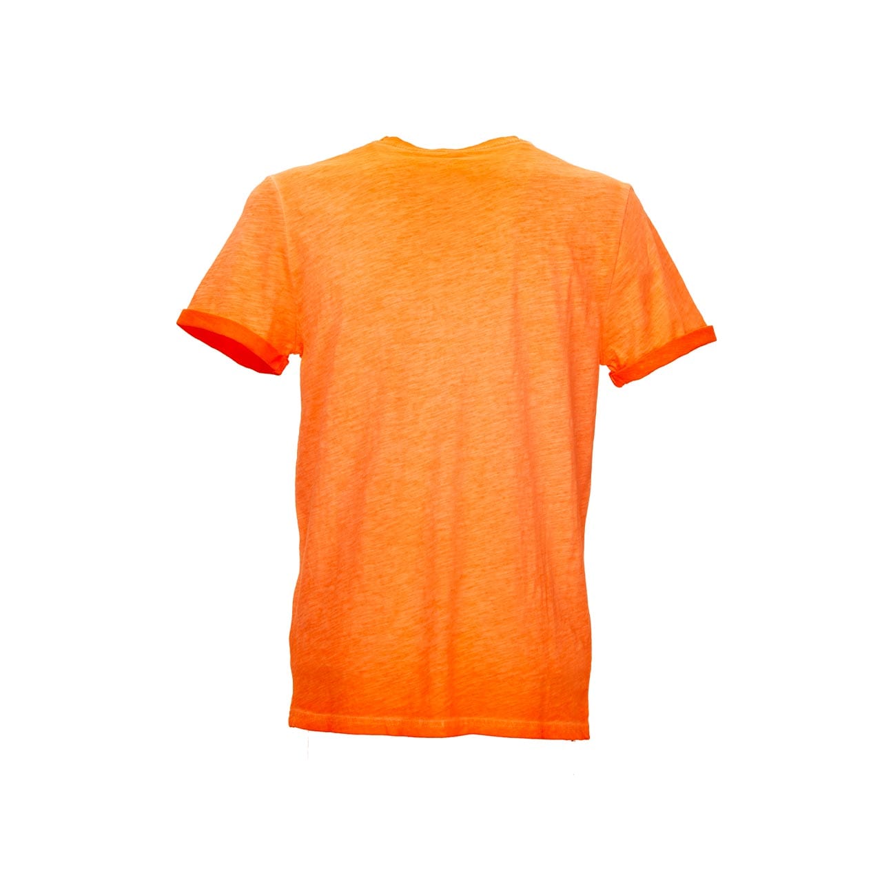 T-Shirt manica corta in 100% cotone fiammato in colore Orange Fluo. Tessuto di alta qualità in cotone con filato "slub cotton” (cotone fiammato) ottenuto con fili di spessore variabile che rendono la T-Shirt estremamente confortevole, traspirante e delicata sulla pelle. Slim-Fit. Girocollo a coste. Logo ricamato tono su tono.