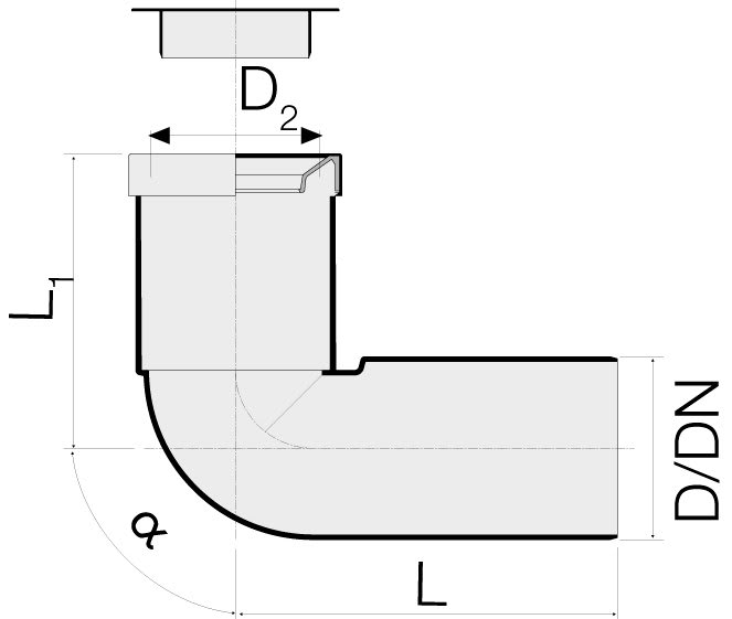 Curva bianca WC prolungata con guarnizione e tappo di protezione lunghezza 230 mm