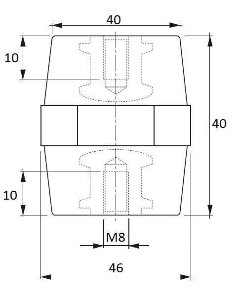 ISOLATORI E PORTASBARRE Altezza: 40 Tipo: Esagonale Inserto: M8