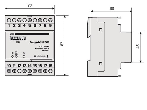 Contatori statici per la visualizzazione del consumo di energia attiva in impianti trifase a 230 V (fase-fase). Certificabili UTF su richiesta.