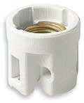 Portalampade E27, corpo porcellana cilindrico ø 50 mm, portavirola metallica isolata, bianco. Fori di fissaggio ø 4,5 mm interasse 38 mm