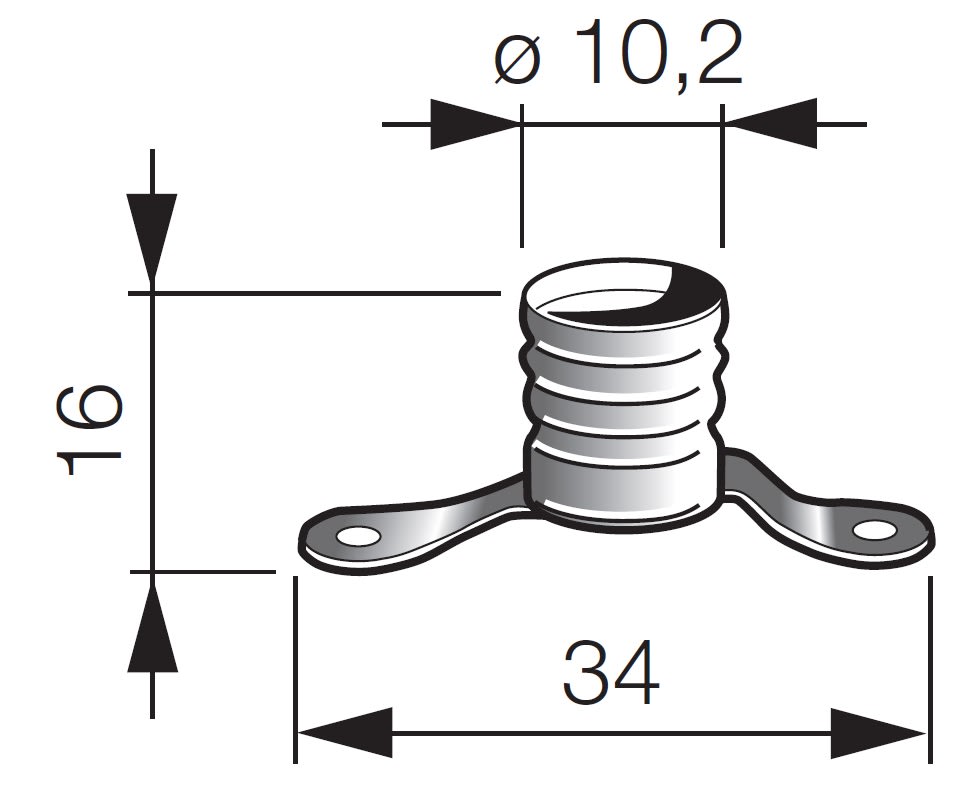 Portavirola E10 con alette, ottone nichelato. Da completare con protezioni isolanti contro i contatti accidentali con parti in tensione. Adatto per applicazioni SELV.