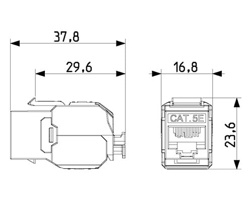 Connettore RJ45 Cat. 5e, non schermato, per pannello di permutazione 03024.E e 03303.E, cablaggio universale T568A/B, 8 contatti, morsetti ad incisione d'isolante senza utilizzo di utensile