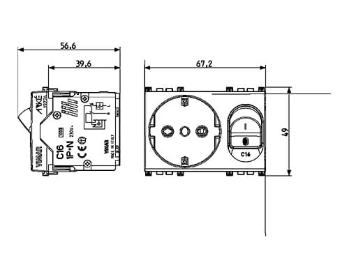 VIMAR SPA - VIW19276 PRESA 2P+T 16A P30 INTB+MT C16 GRIGIO - 19276