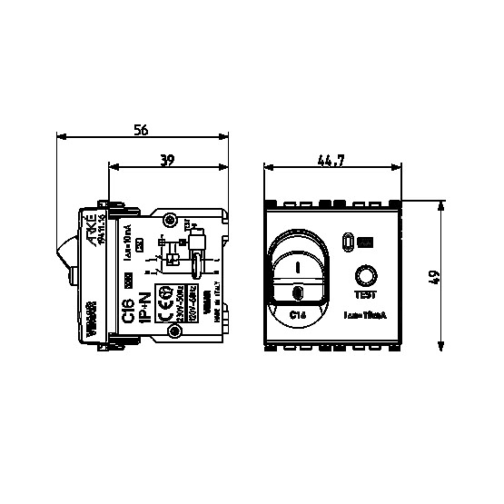 VIMAR SPA - VIW19411.16.B INTERRUTTORE MTDIFF.1P+N C16 10MA BIANCO - 19411.16.B