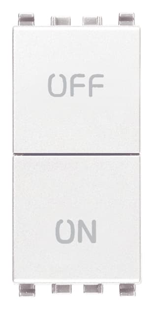 Due pulsanti indipendenti 1P NO + 1P NC 10 A 250 V~, simboli ON e OFF, bianco