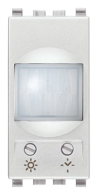Interruttore con sensore di presenza ad infrarossi per accensione luci, soglia del sensore crepuscolare e ciclo di temporizzazione regolabili, uscita a relè NO 6 A 230 V~, alimentazione 230 V~ 50-60 Hz, Next