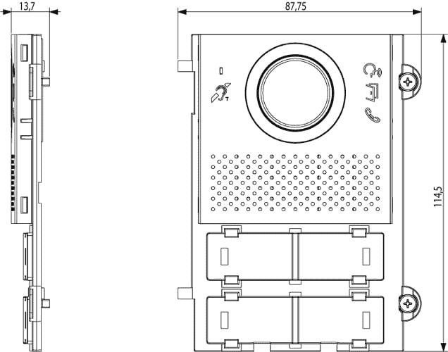 Modulo frontale audio/video, Pixel, per unità elettronica audio/video Due Fili Plus 41004, con funzione audiolesi e simbolo teleloop, bianco.